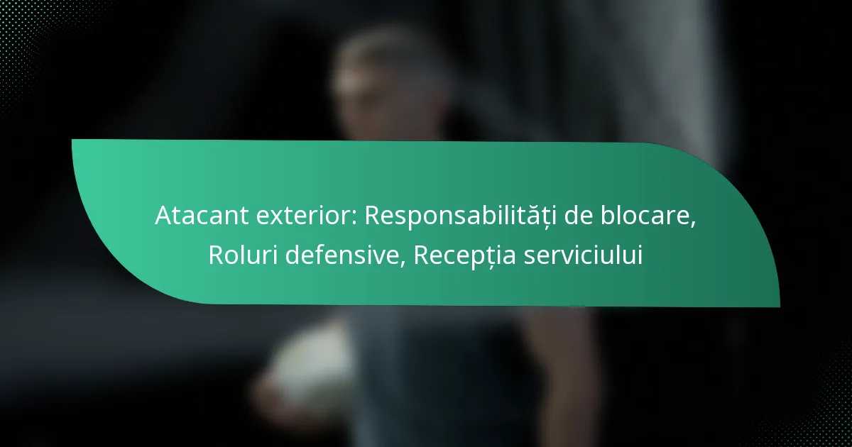 Atacanții din exterior sunt esențiali pentru succesul unei echipe de volei, asumându-și responsabilități cheie în blocaj, apărare și recepția serviciului. Aceștia trebuie să se poziționeze eficient și să-și cronometreze salturile pentru a împiedica atacurile adverse, în timp ce susțin jucătorii din linia de fund și comunică strategii. Prin stăpânirea tehnicilor de recepție a serviciului, atacanții din exterior îmbunătățesc capacitatea echipei de a răspunde la jocurile ofensive și de a menține o prezență defensivă puternică.