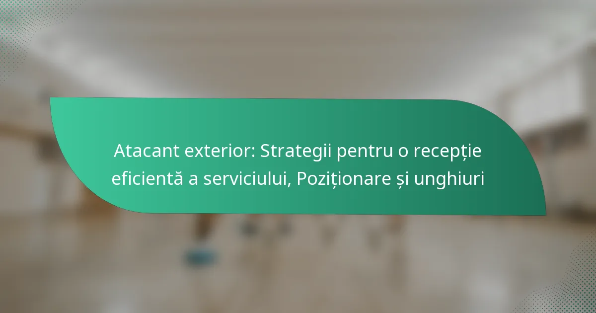 Pentru a îmbunătăți recepția serviciului, atacanții din exterior ar trebui să se concentreze pe mai multe tehnici cheie. În primul rând, menținerea unei poziții joase și echilibrate permite o stabilitate mai bună și reacții mai rapide. În al doilea rând, utilizarea platformei cu antebrațele ajută la direcționarea precisă a mingii. În al treilea rând, comunicarea eficientă cu colegii de echipă asigură că toată lumea este conștientă de rolurile lor în timpul recepției.