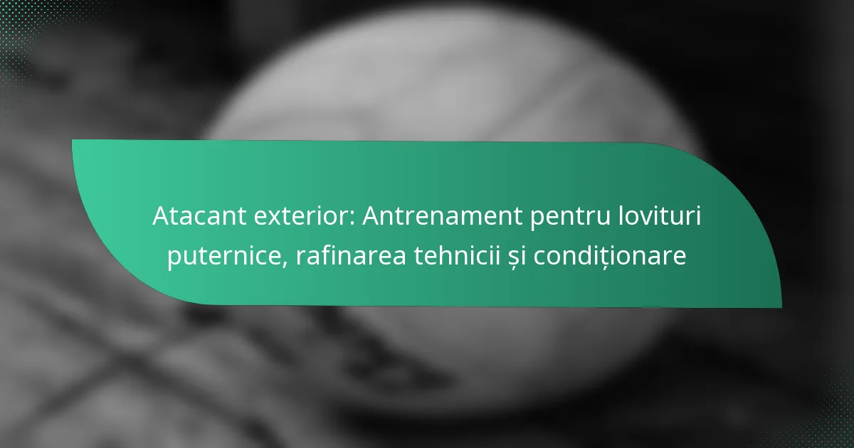 Lovitura puternică este o abilitate definitorie pentru atacanții exteriori, implicând o combinație de tehnică, sincronizare și forță. Elementele cheie includ o abordare puternică, mișcări corecte ale picioarelor și un salt exploziv pentru a maximiza puterea loviturii. Atacanții exteriori ar trebui să se concentreze pe dezvoltarea mecanicii loviturii pentru a asigura un contact constant și puternic cu mingea.