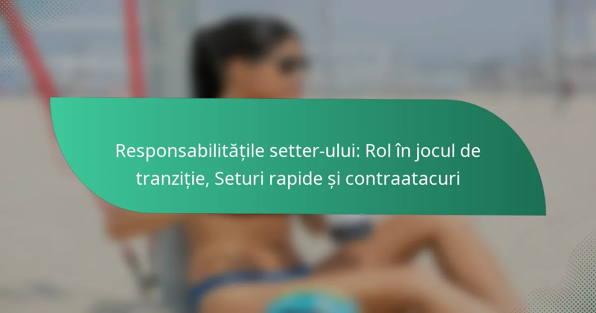 Responsabilitățile principale ale unui setter în volei includ facilitarea jocurilor ofensive, luarea deciziilor strategice și comunicarea eficientă cu coechipierii. Un setter trebuie să citească dinamica jocului, să se adapteze la diverse situații și să execute strategiile echipei, menținându-și calmul sub presiune.